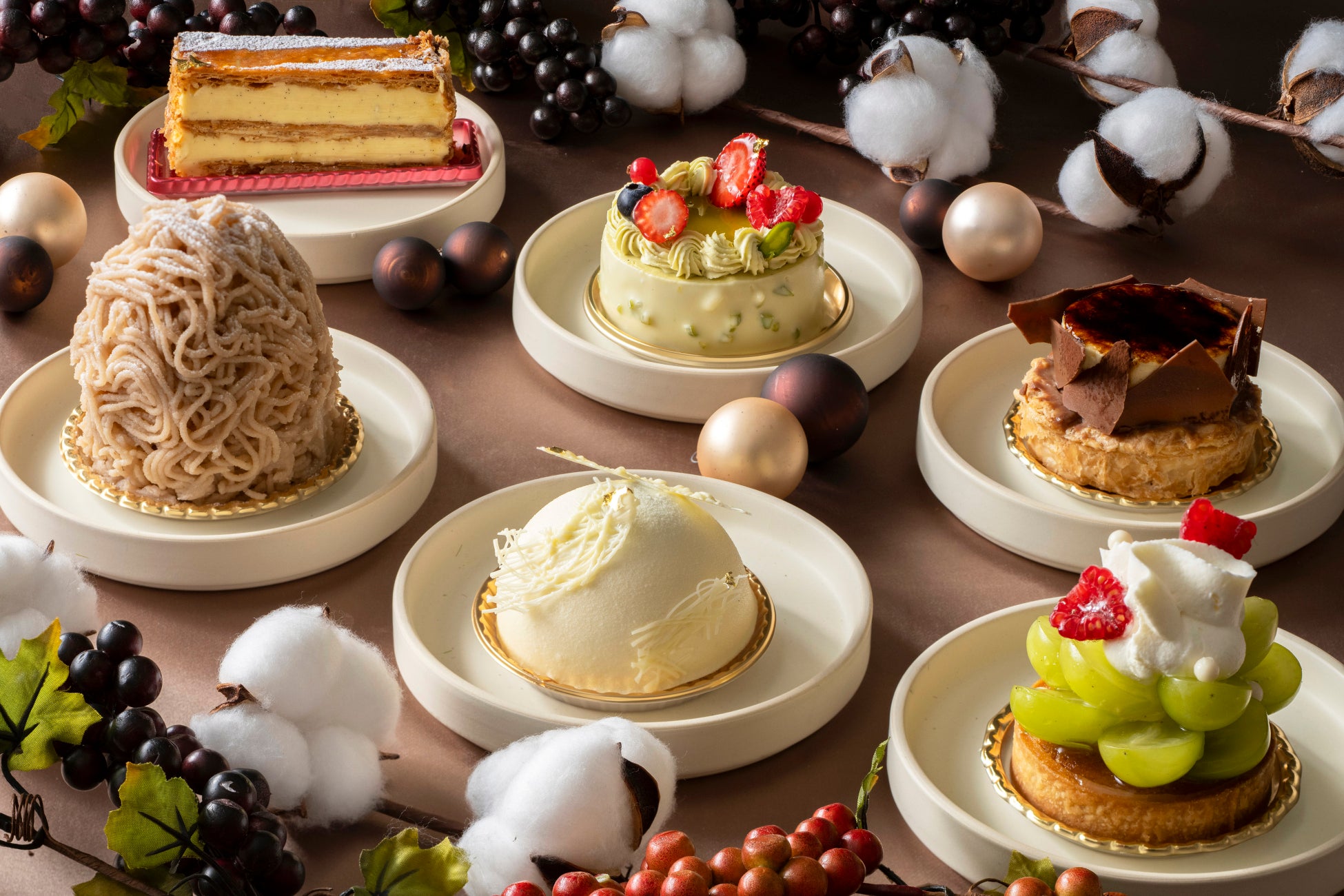 スノードームのようなフォルムが可愛らしいホワイトチョコレートムースやリンゴとキャラメルのバランスが絶品の一品、シャインマスカットのデコレーションが美しいタルト、クリスマスリースに見立てたピスタチオのケーキなど、パティシエの技術と愛情を込めた「ウインタースイーツ」をご用意します。