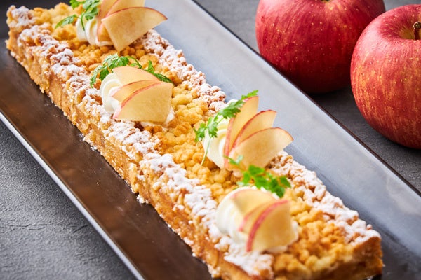 スイーツでは、優しい甘さが魅力の長野県産のりんごのコンポートとサクサクで口溶けのいいクランブルを合わせた秋を感じるランチ限定の「長野県産りんごのクランブル」、新潟県産ル・レクチェ(洋梨)の繊細な香りと、ヨーグルトムースとあんずソースの酸味がベストマッチなヴェリーヌや、甘酸っぱい旬の長野県産ぶどうの風味を味わえる杏仁豆腐などをご堪能ください。