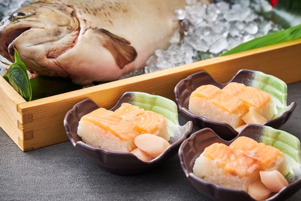 きめ細かく肉厚な身に旨味がギュッと凝縮された、長野県の「信州サーモン」を押し寿司にてご提供します。トロリととろける舌ざわりと豊かな味わいをご堪能ください。