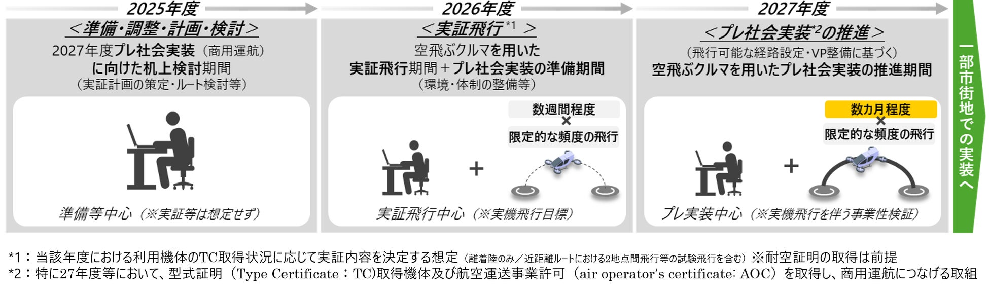 ※引用元:「東京都「空飛ぶクルマ実装プロジェクト」Ⅰ期 今後の想定スケジュール」