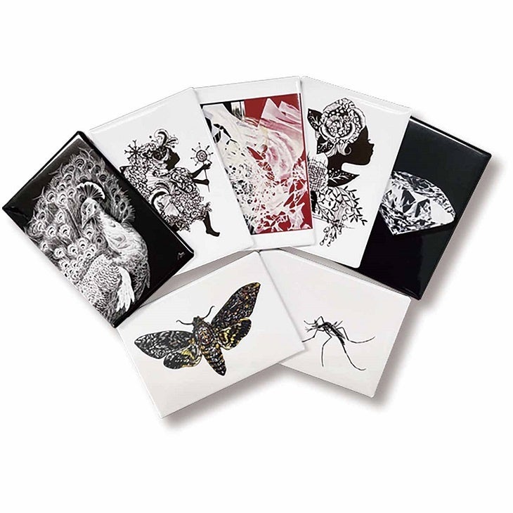 本展では、日本を代表する女性の切り絵作家7人の100点を越える作品を展観いたします。蒼山日菜は小さなハサミだけを使い、まるで繊細なレース編みのように切り抜いた作品で知られています。SouMa(ソウマ)は切り絵の概念を超えた立体的で重層的かつ精緻な作品を特徴としています。筑紫ゆうなは多くのパーツを丹念に切り取り、絵具やパステルで着彩することによってユーモラスでちょっと不思議な作品を組み立ててゆきます。福井利佐は高度なデッサン力に裏打ちされた曲線描写と大胆な構図の力強い作品を生み出します。切り剣Masayoは生き物をテーマにした、すべてつながった一枚の紙から生み出されたとは信じ難い立体感と生命力あふれる作品を特徴としています。松原真紀は郷里の八女手漉き和紙にこだわり、季節の草花や動物を1枚の紙から切り出します。柳沢京子は日本古来の渋紙を用いた切り絵作家の第一人者です。このように一括りに切り絵とは呼べないほどバラエティに富んだ7人の作家の作品を通して、現代日本の切り絵の繊細で華麗な世界をお楽しみください。