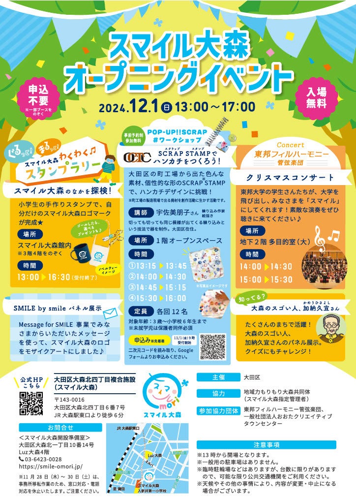 【スマイル大森オープニングイベント概要(入場無料)】 *ちらし参照