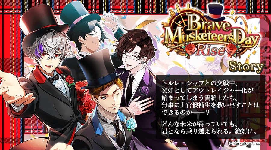 株式会社マーベラス(代表取締役社長:佐藤 澄宣/所在地:東京都品川区)による、スマートフォンゲーム『千銃士:Rhodoknight』(読み:せんじゅうし ろーどないと 以降、『千銃士R』)は、開催中の1周年記念イベント「Brave Musketeers Day: Rise」にあわせて、イベント内で活躍するドイツ、ベルギーグループの★3の新カードがピックアップで登場する期間限定ガチャを開催いたします。ドイツグループのピックアップガチャの開催にあわせて佐藤拓也さん(ドライゼ役)、諏訪部順一さん(エルメ役)、笠間淳さん(ジーグブルート役)、ベルギーグループのピックアップガチャの開催にあわせて前野智昭さん(ファル役)、野島健児さん(ミカエル役)、松岡禎丞さん(カトラリー役)の直筆サイン色紙が当たるリツイートキャンペーンを開始いたしました。