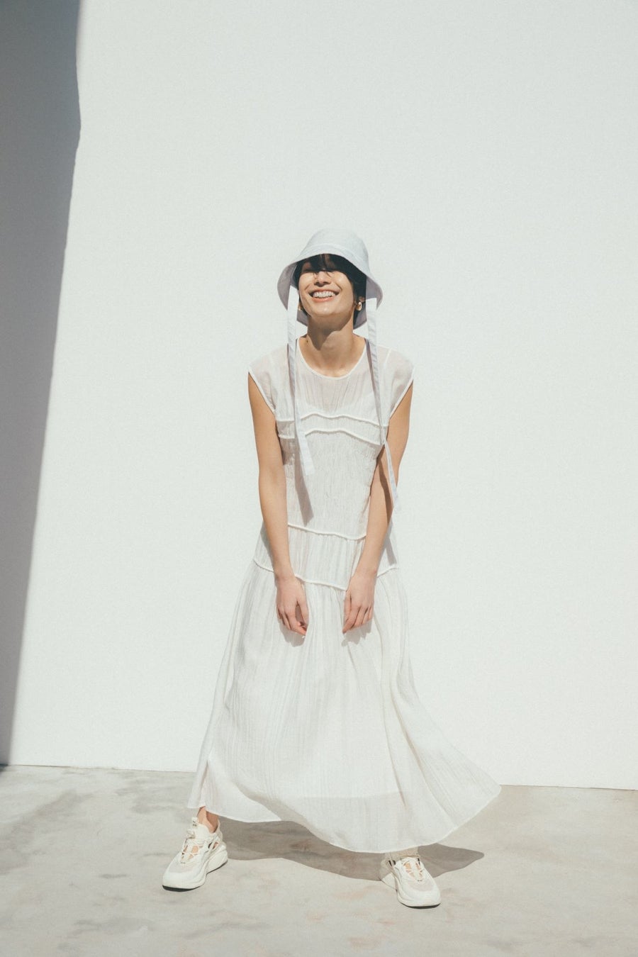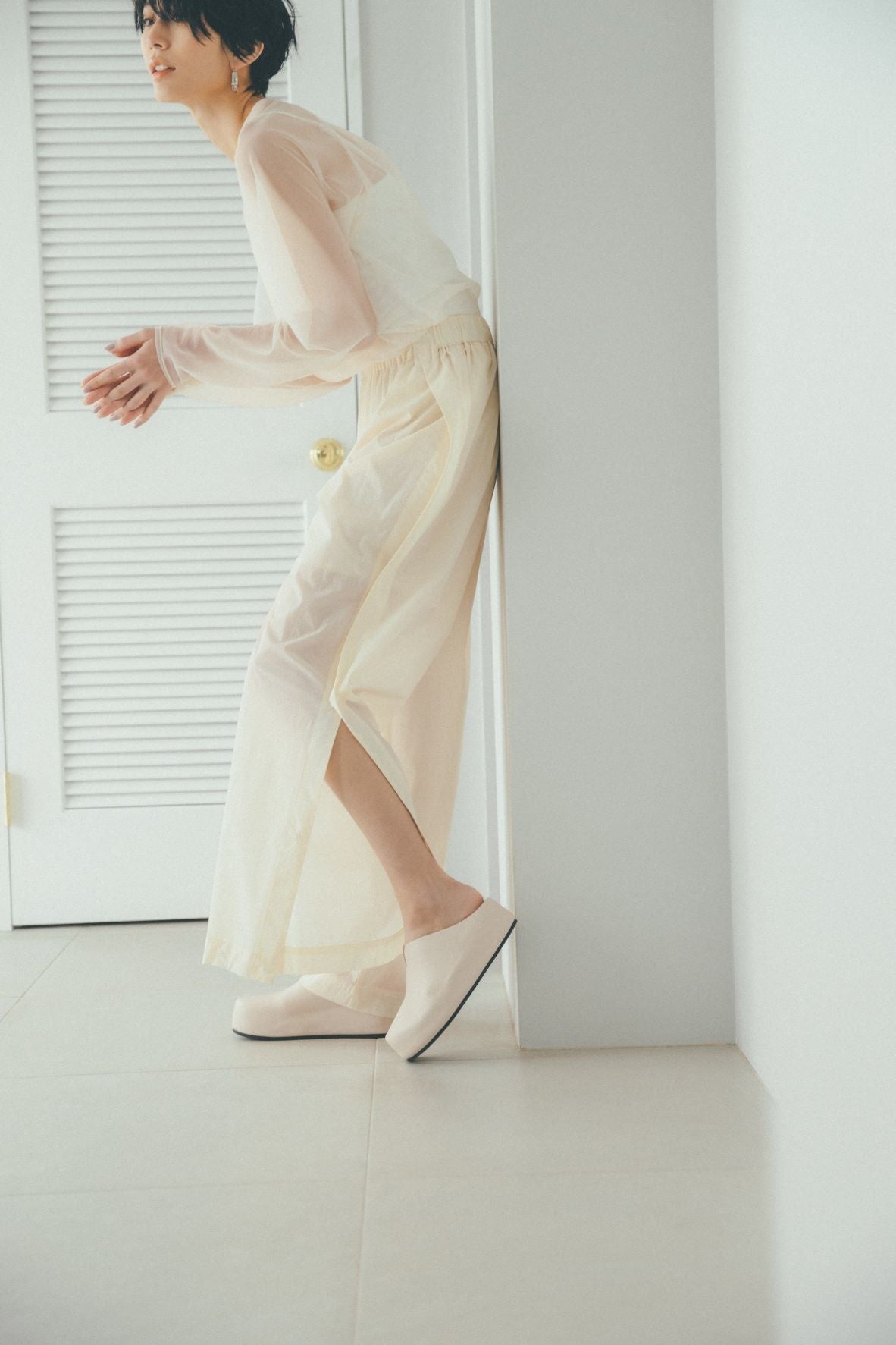 emmi のクリアモードなエッセンスを効かせて身に着けることで、気分も涼やかに過ごせる