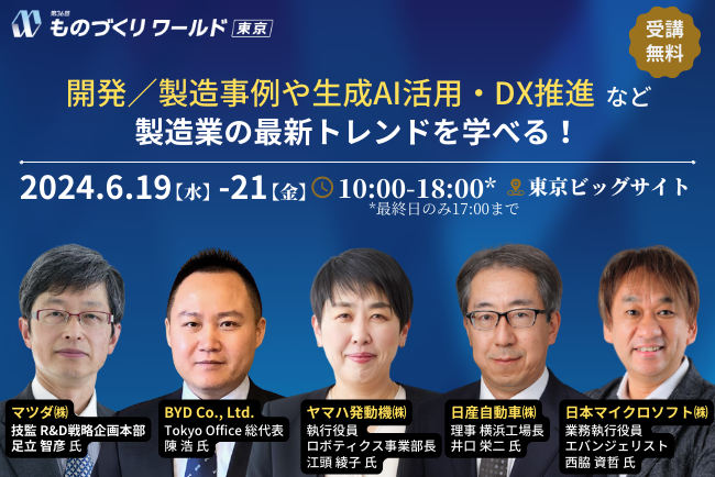【6月19日(水)~開催】 日産自動車/マツダ/ヤマハ発動機/日本マイクロソフト/BYD 等が登壇!製造業の最新トレンドを学べる無料セミナーを開催 @東京ビッグサイト