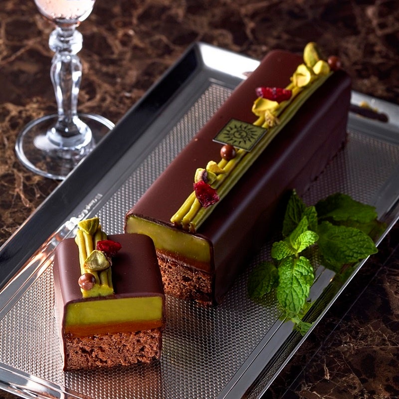 しっとりとしたブラウニーとピスタチオガナッシュのコクを、間にしのばせたキャラメルのほろ苦さが引き立てて。[通期]西武池袋本店限定