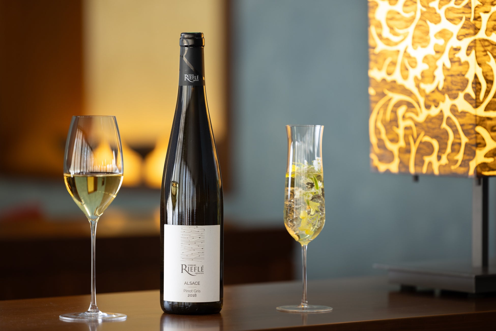 フランス・アルザス地方の白ワイン、ドメーヌ・リーフレ ピノ・グリ2018をペアリングしました。軟らかいテクスチャーが、繊細な身のヒメマスによく合います。白い花を連想させるワインの芳香と、クレソンソースに感じられるほのかな花の香りが合い、香りの同調によるマリアージュを堪能できます。