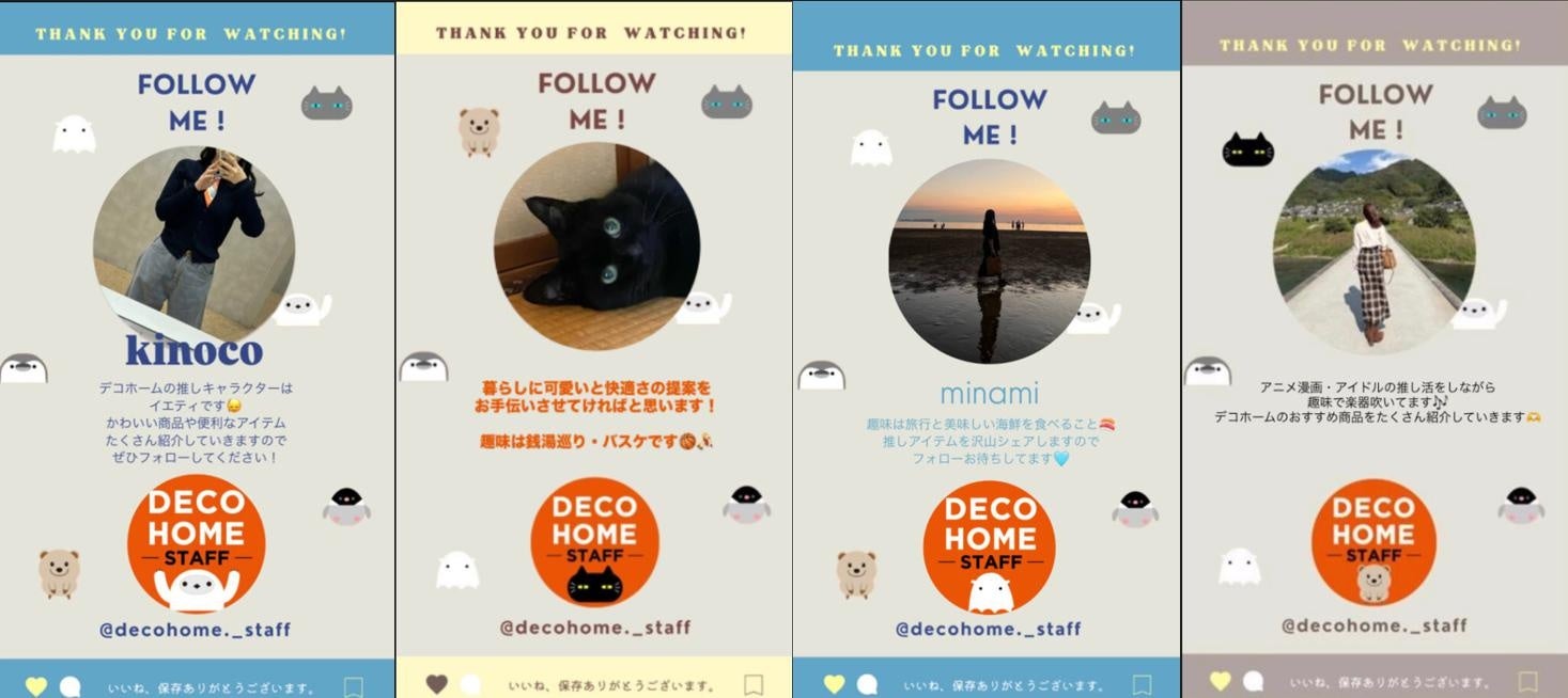 デコホームでは現在、3つのスタッフアカウントを運用しており、新商品やおすすめ品などを発信しています。「デコネコ」「シマエナガ」、そして2026年のデコホーム新商品紹介に向けて準備中の「ウサギ」が、それぞれのキャラクターを軸に、個性豊かな情報をお届けしています。