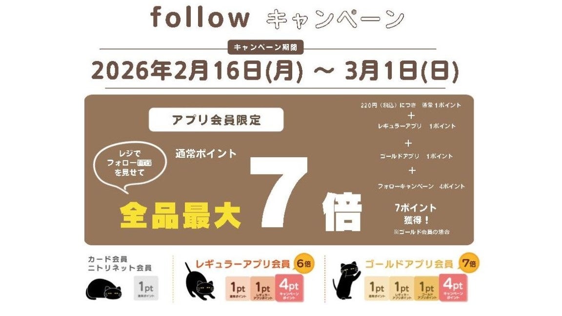 株式会社ニトリ(本社:札幌市北区代表取締役会長兼社長:似鳥昭雄:以下ニトリ)より、2026年2月16日(月)~3月1日(日)の期間、全国のデコホーム店舗にて開催いたしますインスタグラムを用いたお得なキャンペーンについてお知らせいたします。