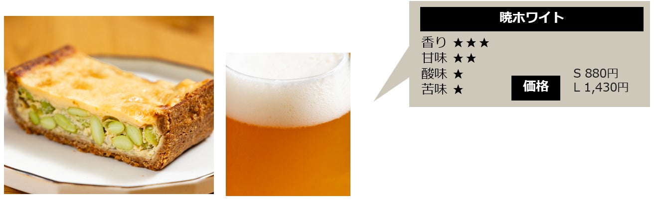 暁ブルワリー東京ラボのビール醸造で出るモルトカスをタルト生地に使用。そのモルトカスを飼料にしている世田谷の吉見園さんの鶏の卵をたっぷり使用した、枝豆ぎっしりキッシュ。サクサク感の生地と具材のほどよい歯ごたえが五感を刺激する、暁タップスのゼロ・ウェイストな一品です。
