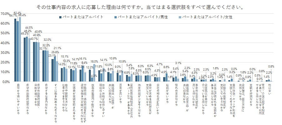 「自宅から通いやすいから」64.7%、「希望の勤務時間帯だから」45.2%、
