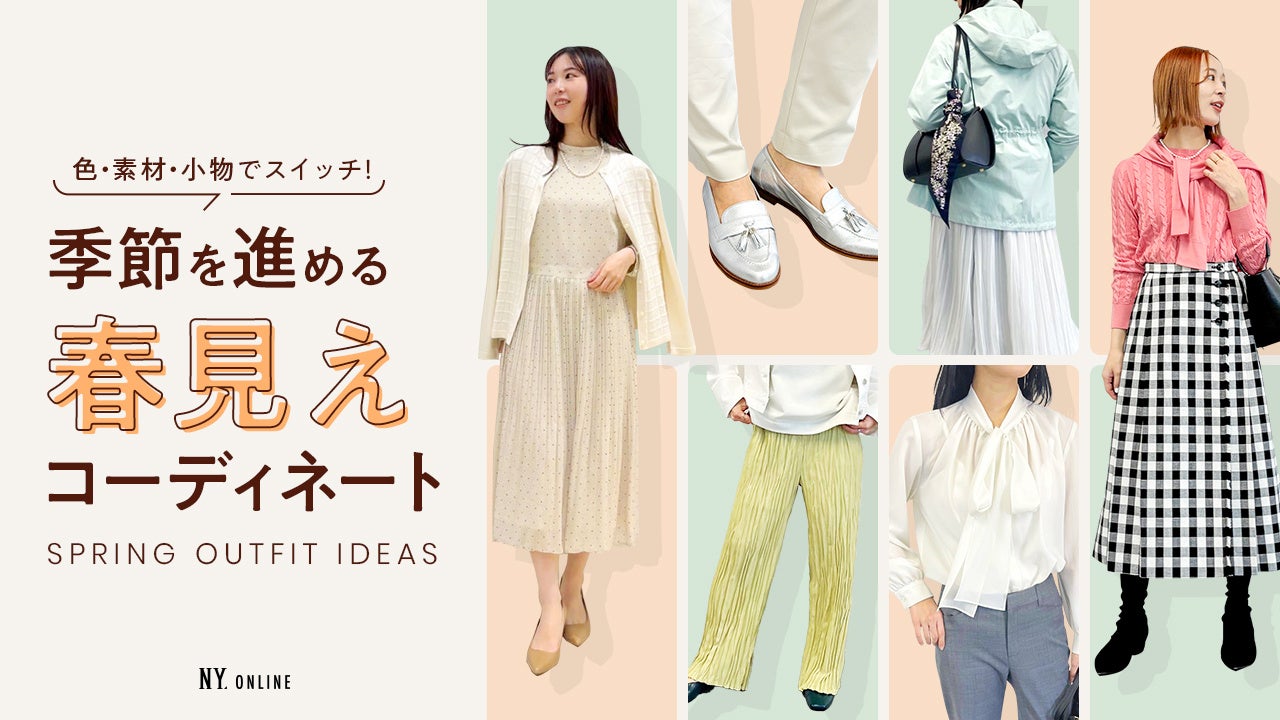 そろそろ新しいアイテムや春の装いも楽しみたくなってくる頃。春のムードを感じる「色」「素材」「小物」を取り入れて、少しずつ季節をシフトしてみませんか?NYオンラインの最新のおすすめアイテムと共に、スタッフが着こなす「春見えコーデ」をご紹介いたします!