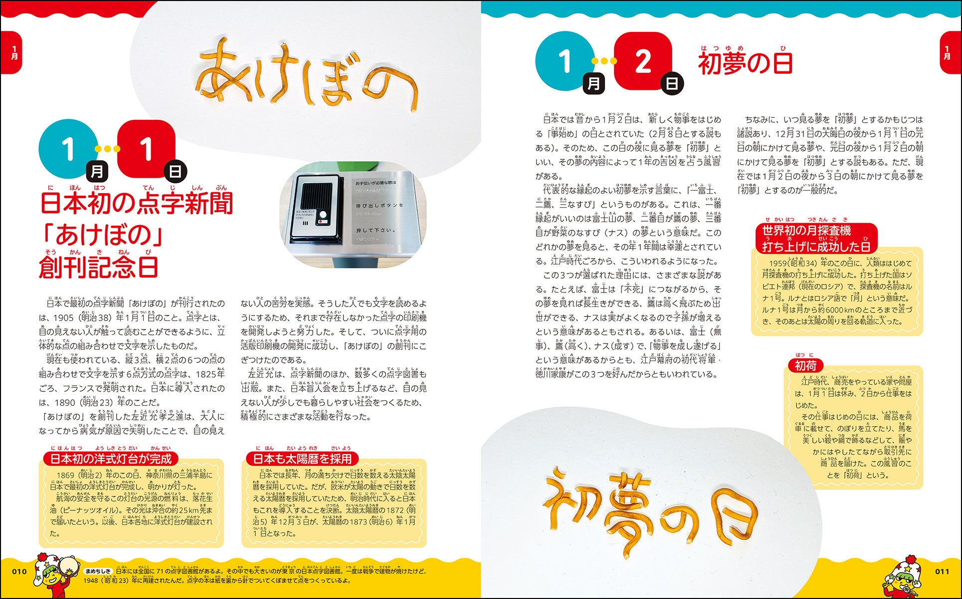 そのほかにもサブの記念日も簡単に紹介し、1日で3つ記念日・できごとを学べます。記念日にまつわる著名人のインタビューも掲載。「この本の使い方」と索引により、調べ学習にも最適です。