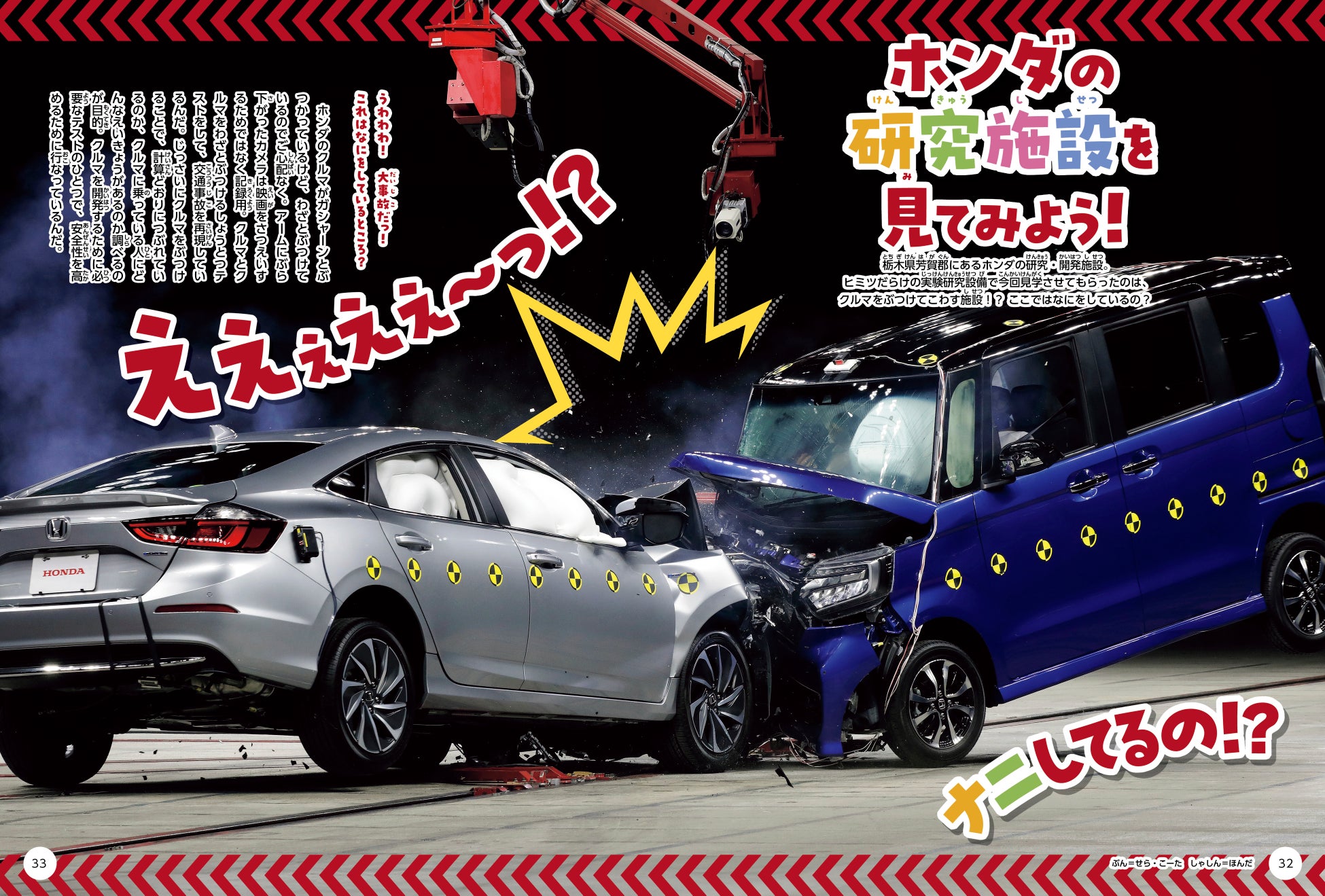 ホンダの研究しせつはどんなことが行われているのかな。クルマをぶつけるのも大事な研究なんだね。