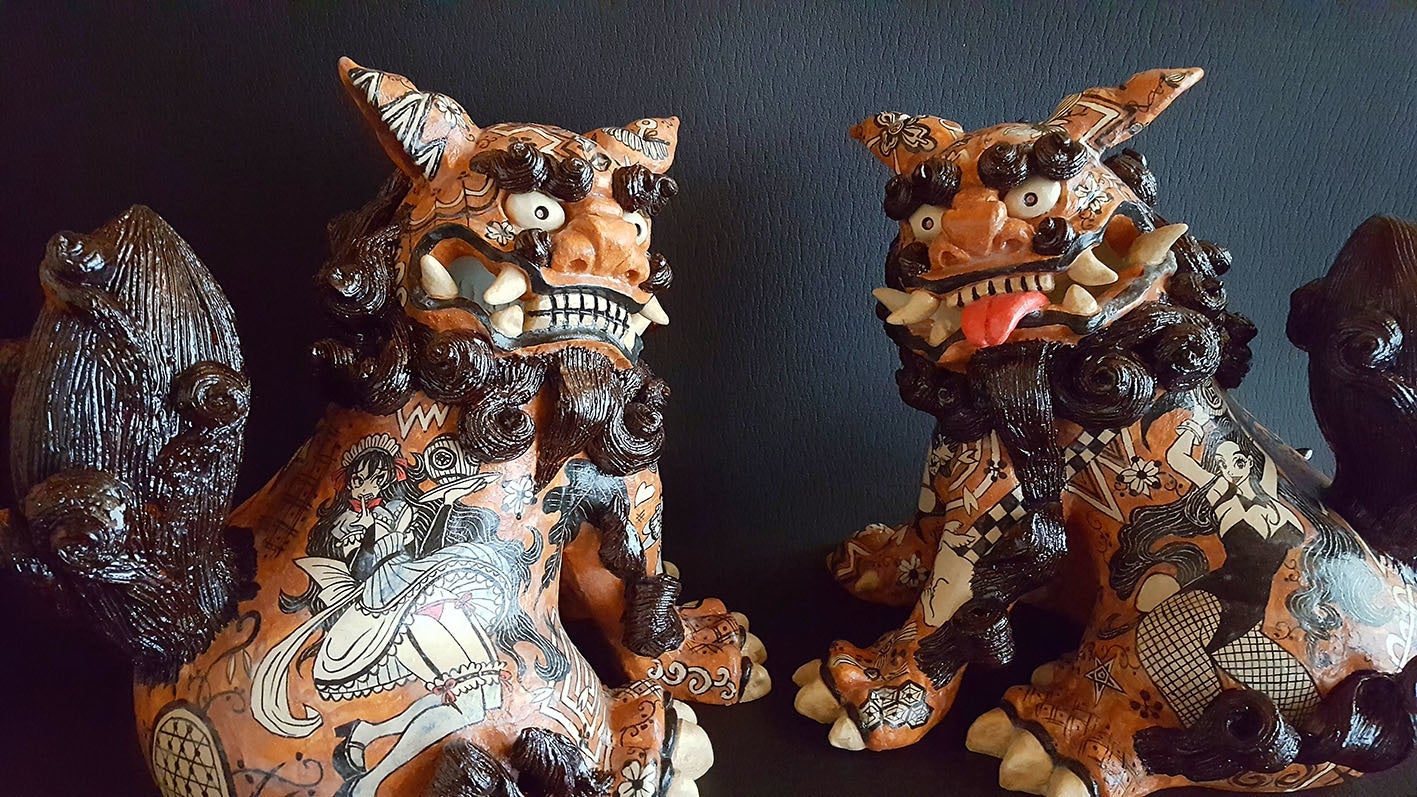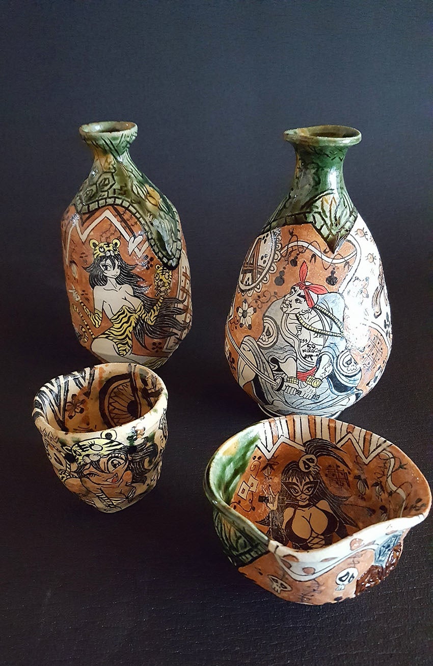 今回の個展で二度目になります。前回の個展から二年が経ちました。その間色々と挑戦してきました。絵付けのクオリティーアップ、新しい技法の取り入れ、引き出し黒などさまざまです。新作の漫画織部、春画織部などの遊びのある茶道具、酒器、人形や瀬戸黒などの伝統的な焼き物を出展致します。 少しでも変化、成長を感じていただけたら幸いです。