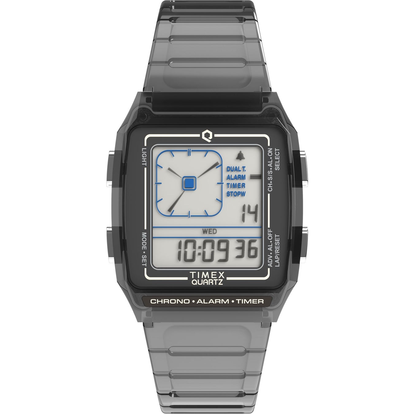 「Q LCA Transparent」は1980年代初頭に発売されたデジタル表示とアナログ表示を兼ね備えた「Q TIMEX LCA」をベースに、ノスタルジックながらも新しさを感じるフォルムや機能はそのままに、新たにスタイリッシュな半透明の樹脂素材をケースやストラップに採用しました。
