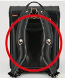 学校のロッカーに収納する時に便利な「でるたキャッチ」(画像:中央)を採用。ベルト部を従来品より2倍の厚さと幅に増量した「ウルトラカーブベルNEXT」(画像:右)が、お子様の身体にやさしい背負い心地を実現。