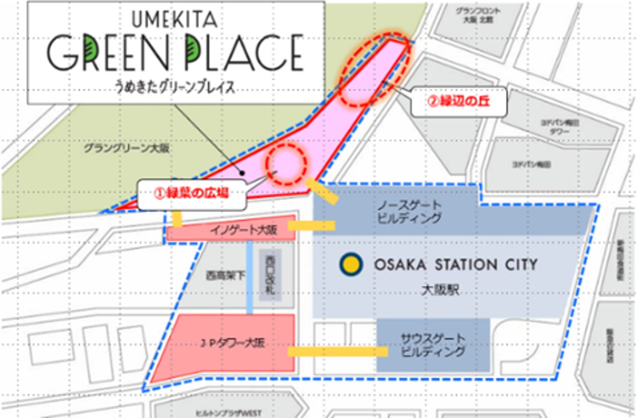 うめきたグリーンプレイス開業日と新たな歩行者デッキ開通日をお知らせします