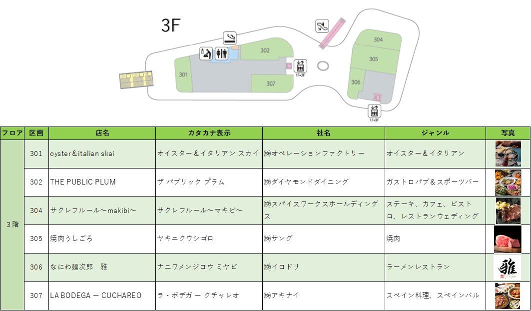・業種:物販、食物販、飲食、フードコート、コインロッカー 等