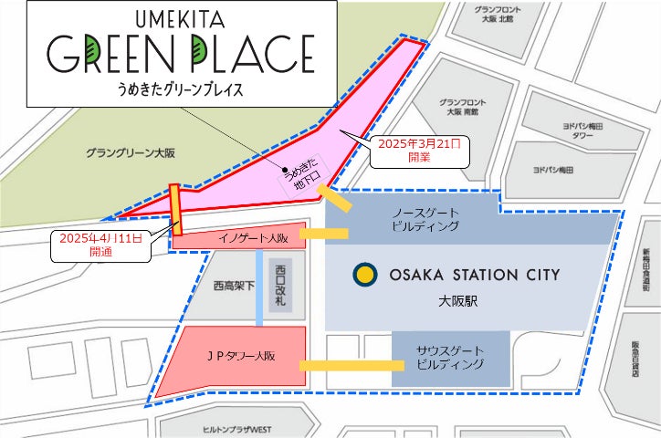 また、イノゲート大阪とうめきた2期区域(グラングリーン大阪南館)を接続する新たな歩行者デッキが2025年4月11日(金)に開通しますので、併せてお知らせいたします。