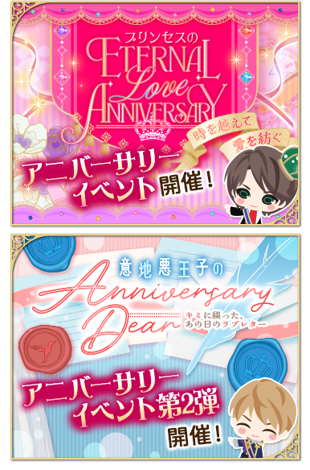王子たちとの特別なストーリーが読めるアニバーサリーイベントを開催いたします。詳細はアプリ内のイベントページにてご確認ください。