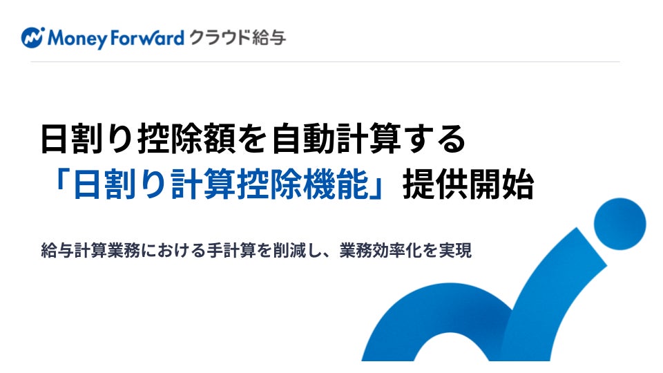株式会社マネーフォワードは、『マネーフォワード クラウド給与』において、支給対象期間の途中で発生する入退職や休職・復職に合わせて、支給金額の日割り控除額を自動で算出できる「日割り計算控除機能」の提供を開始しました。これにより、これまで手計算で行っていた日割り控除額の給与計算業務の効率化につながります。