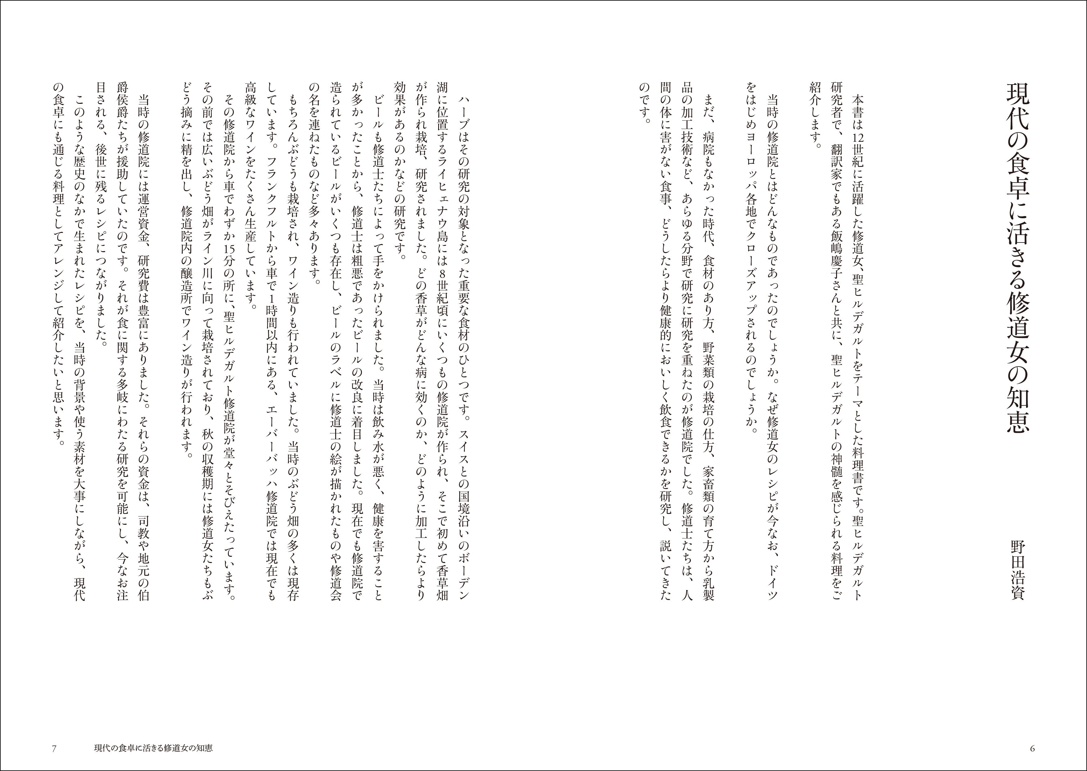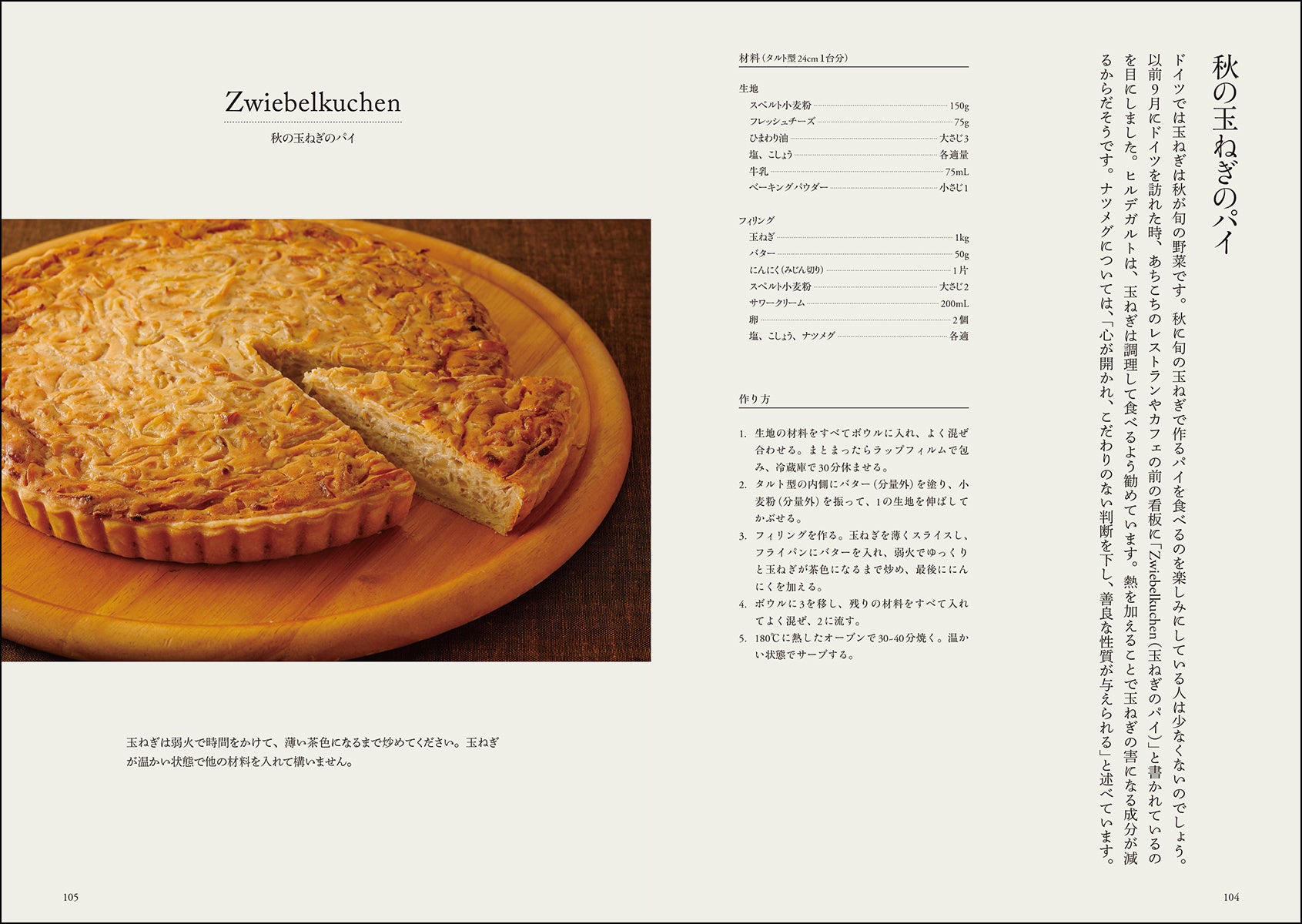 ヒルデガルトは、食材の選び方、その調理法、加工法の研究を重ね、人間の体にどのような効果があるか、害がないか、どうしたらよりおいしく食べることができるかを説いてきました。その知恵は、豊かになりすぎた食生活やストレスの多い生活で健康に不安を持つ現代人に、大きく響くものがあります。