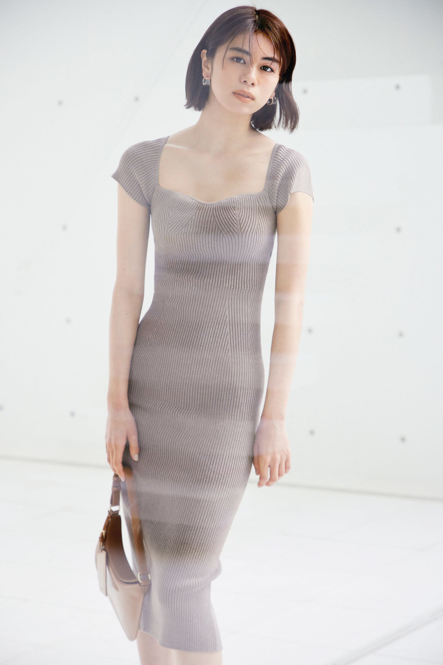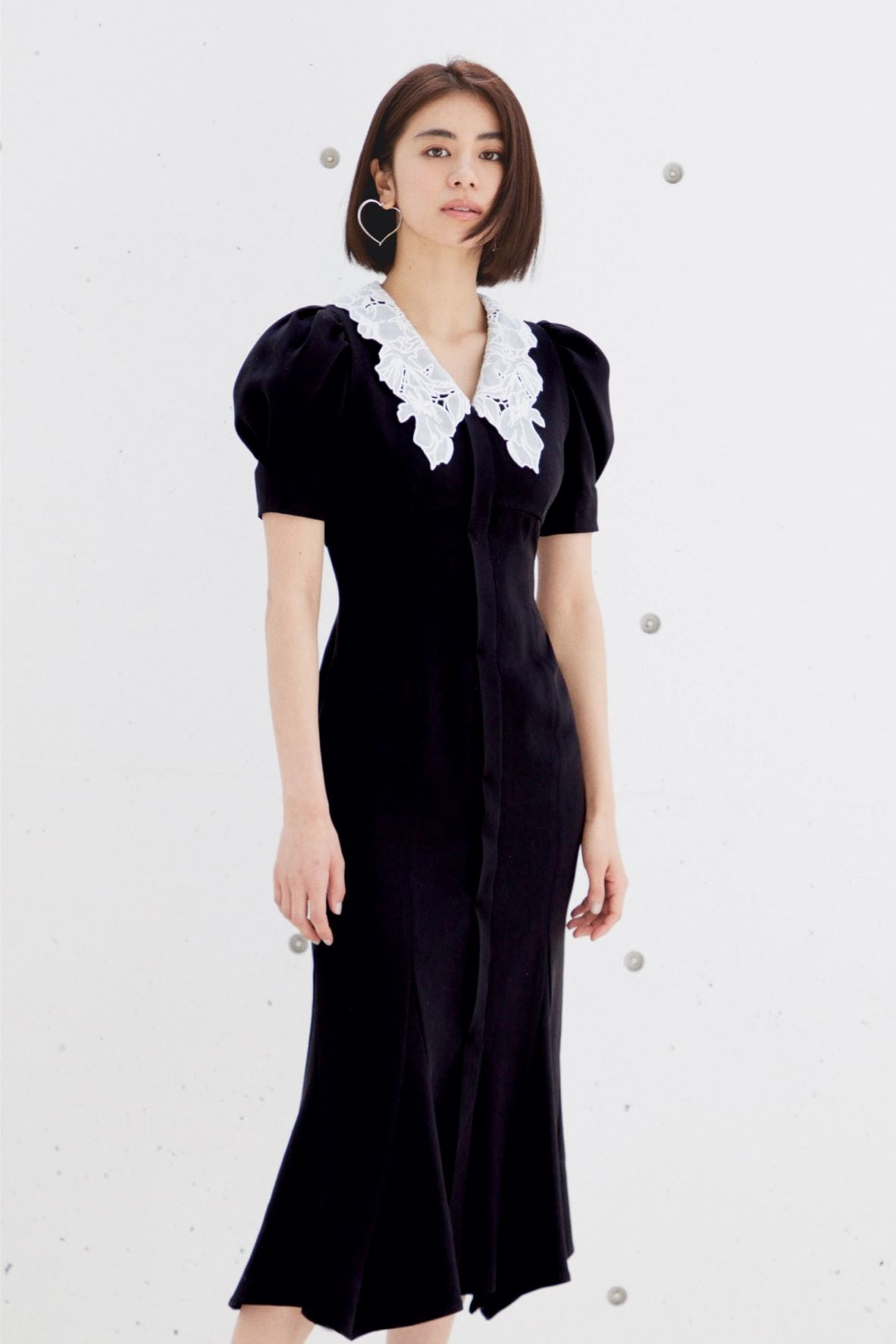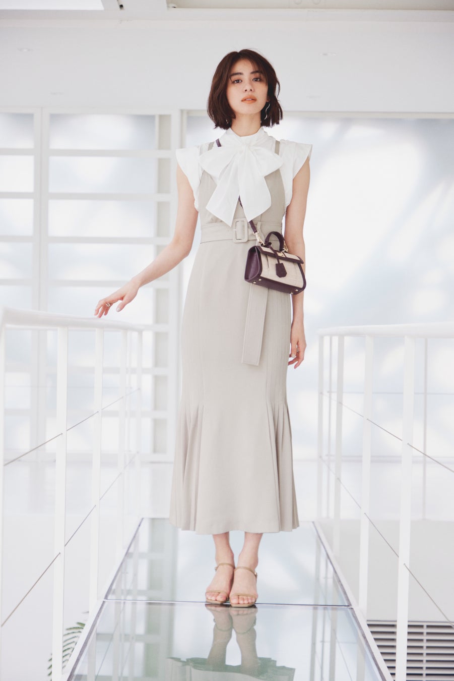 品よく魅せるレディなシルエットや軽やかなシアー素材に、芯のある女性らしさを漂わせる大胆なカッティングやスリットディティールが目を引きます。