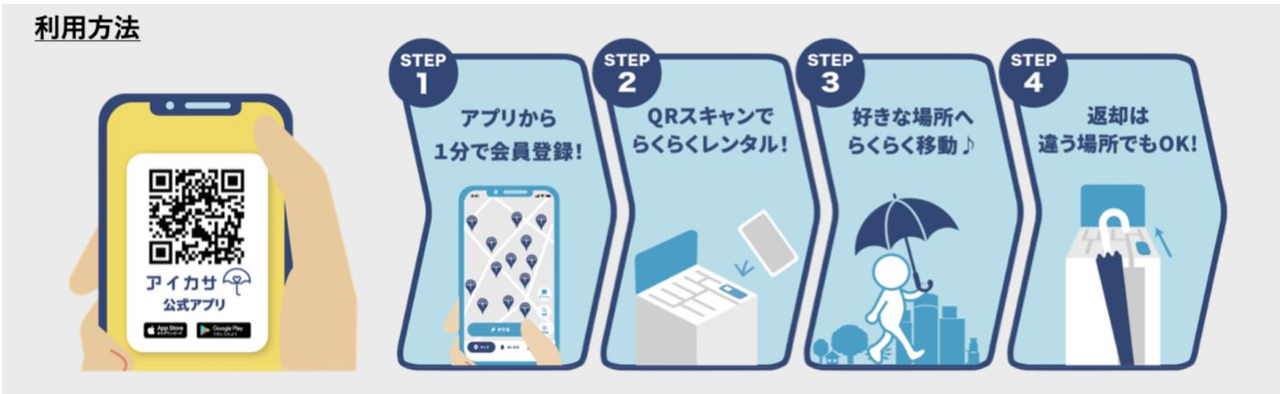 2022年6月に「アイカサ」の設置を開始し、雨の日のお出かけ時の利便性向上に取り組んできました。さらに、2025年7月には晴雨兼用の折りたたみ傘「アイカサmini」のサービス提供を開始し、熱中症予防にも寄与しています。