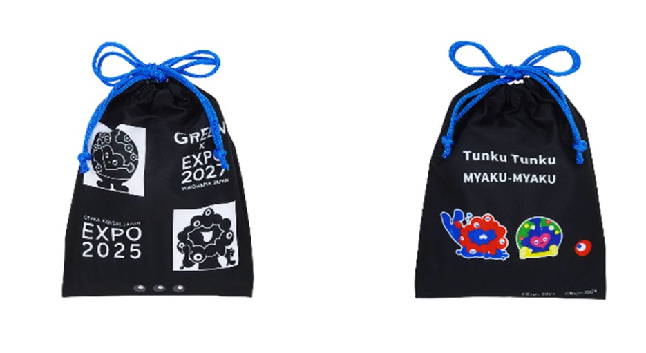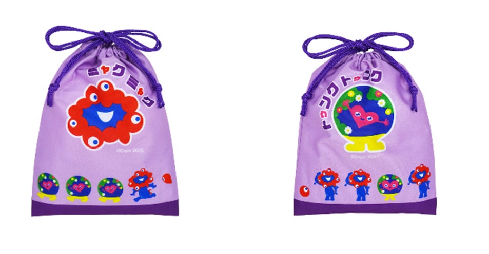 【ミャクミャク】 巾着(ミント、黒、パープル、オレンジ)各880円