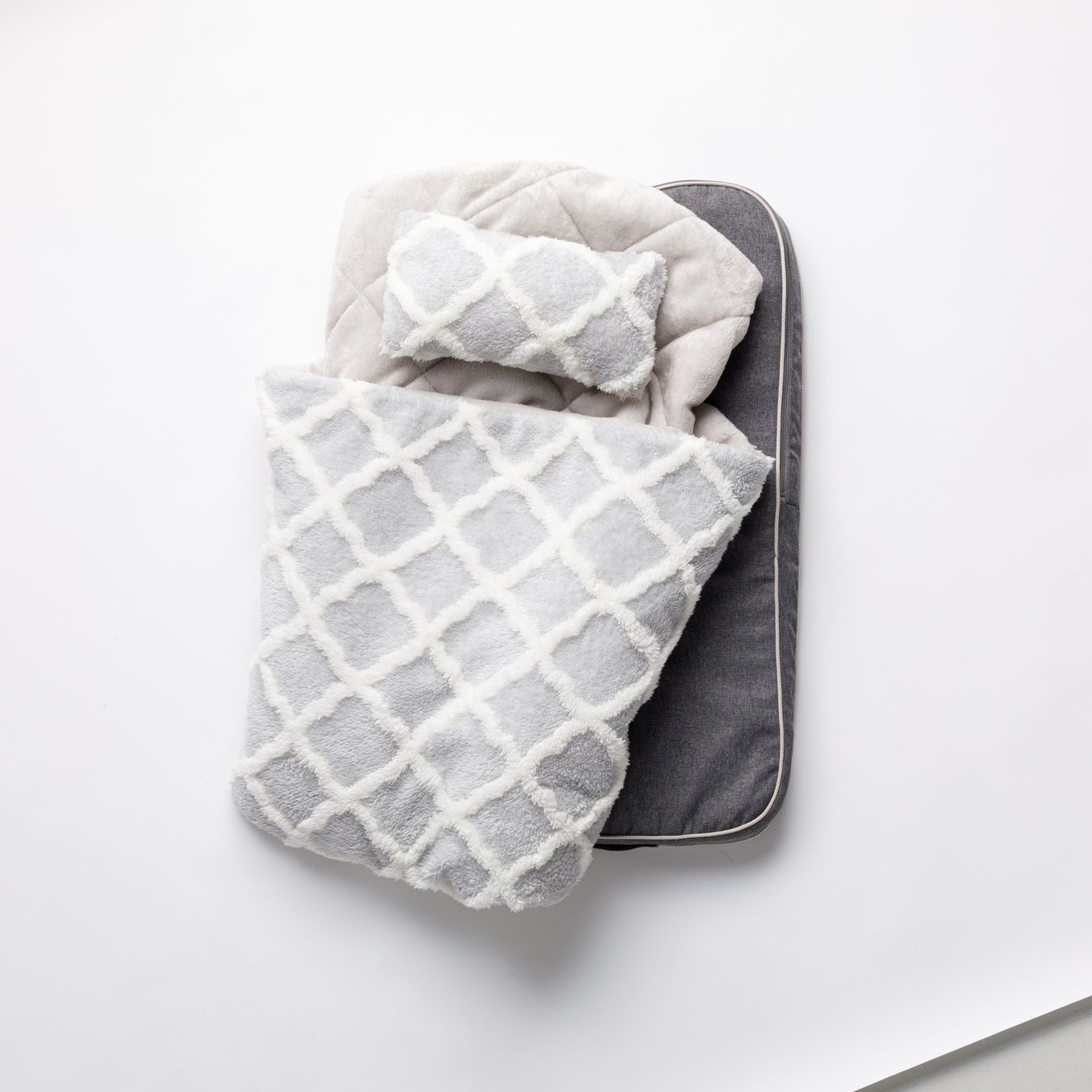 インテリアに自然と馴染むモダンなデザイン柄を採用しており、飼い主様のおふとんの隣に並べても統一感があります。