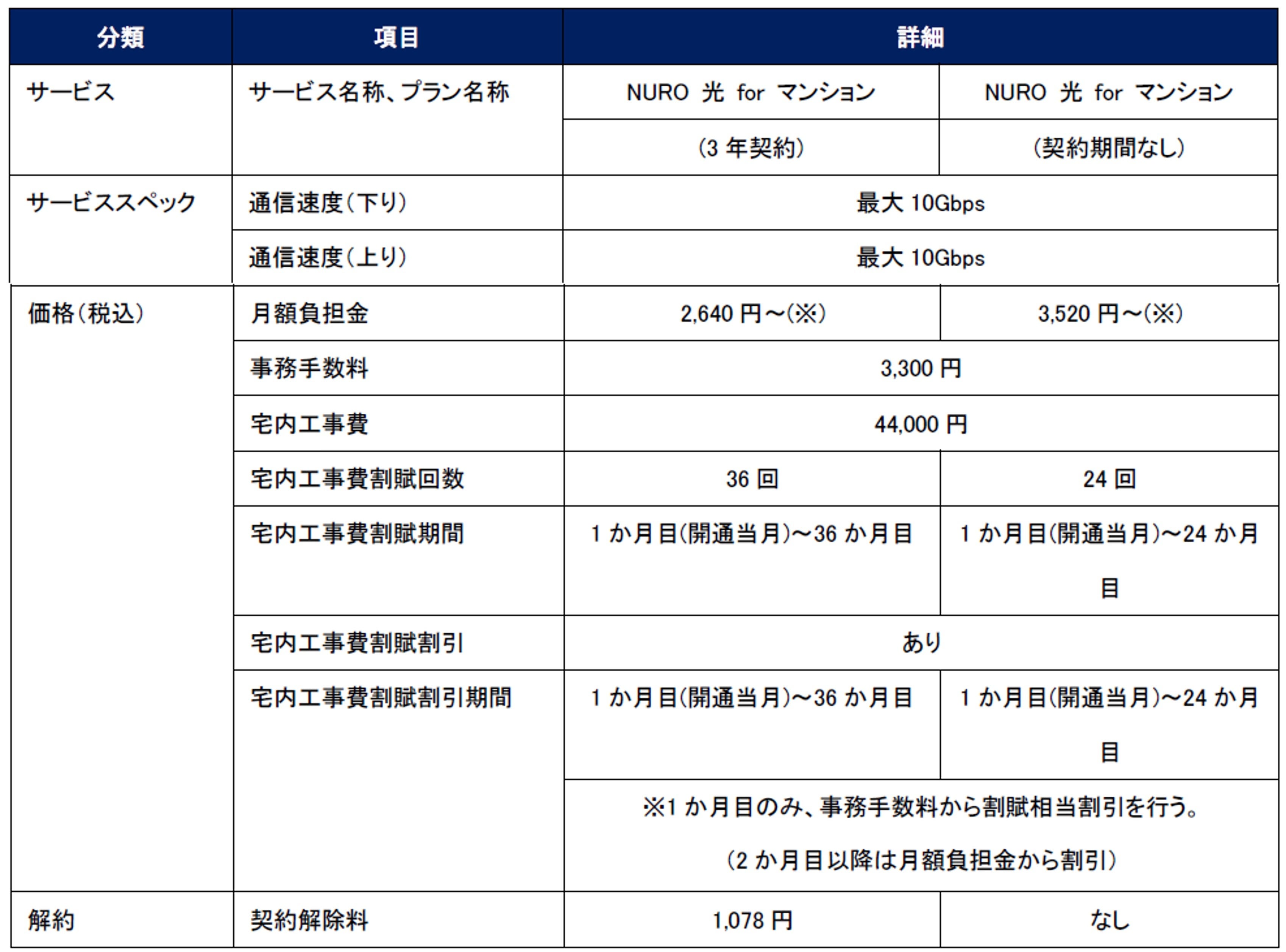 ※「NURO 光 for マンション 10ギガ」プラン詳細はサービスページを参照ください。