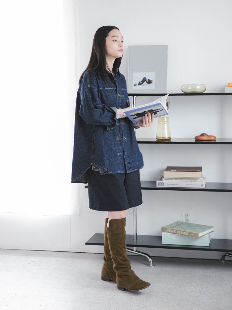 アウターのような存在感を放つディテールが魅力のデニムシャツを別注。