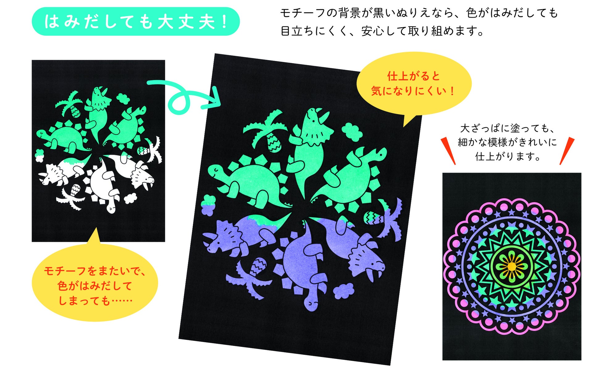 - はみだしても目立たない! 「できた!」の達成感が得られる背景が黒いぬりえ