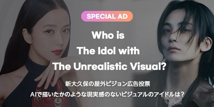 2023年8月14日(月)から8月20日(日)までの期間で開催した、「AIで描いたかのような現実感のないビジュアルのアイドルは?」の投票において1位に選ばれたZEROBASEONEのSUNG HANBINさんの応援広告が、新大久保のK-PLAZA 1号館の屋外ビジョンで上映中です。