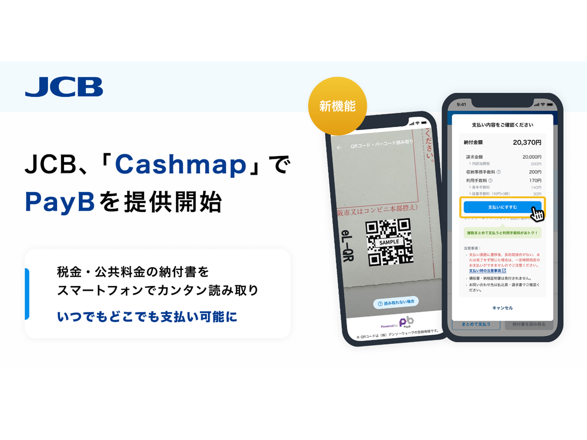 JCB、「Cashmap」で税金・公共料金等支払い業務DXソリューション「PayB for Business」の提供を開始