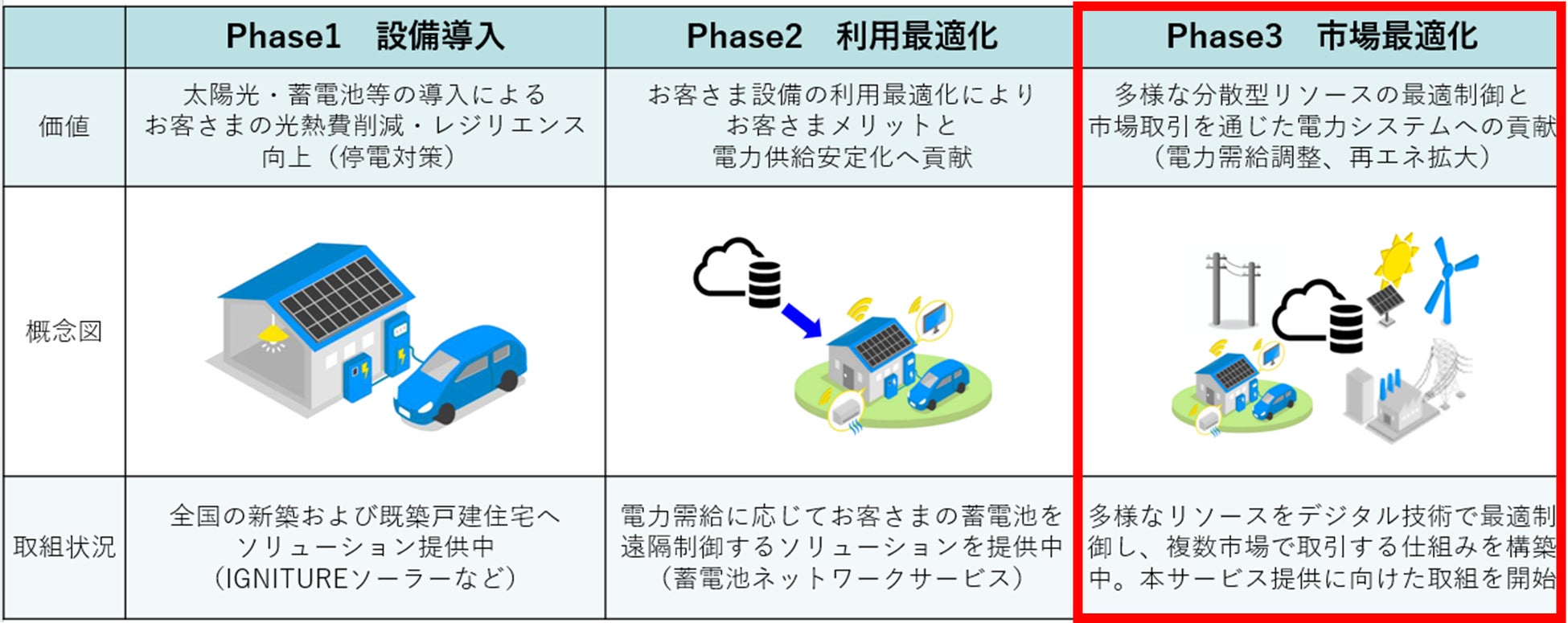 直近の取り組みとして、蓄電池ネットワークサービスをさらに拡充し、より多くの供給力を確保していくとともに、ポイント還元等も含めたお客さまへの経済価値還元につなげていきます。将来的には、電気自動車や給湯器等も含め、ご家庭のさまざまなエネルギー機器を統合的に最適化する仕組みを構築した上で、国内の蓄電池メーカー、商社、販売施工店、自治体などの参画パートナーと連携し、低圧VPPの社会実装を推進し、電力システムの安定化に貢献していきます。
