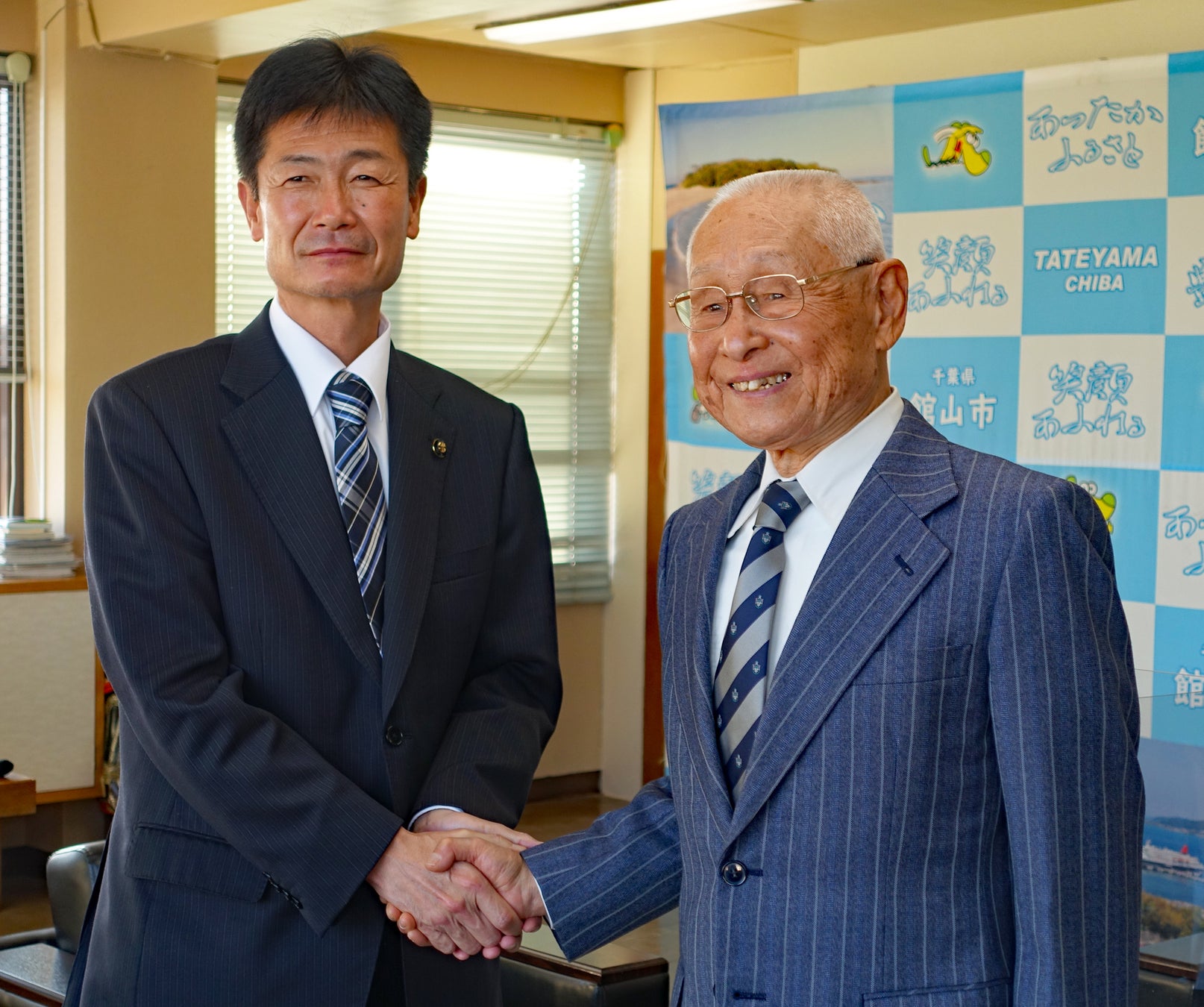 2月9日、稲田選手は毎月合宿で訪れている千葉県館山市の森正一市長を表敬訪問し、「合宿で鍛えて、何とか世界選手権の出場権を取りたい」と意気込みを語りました。森市長からは、「世界選手権に出て、ギネス更新をめざしてほしい」と激励されました。