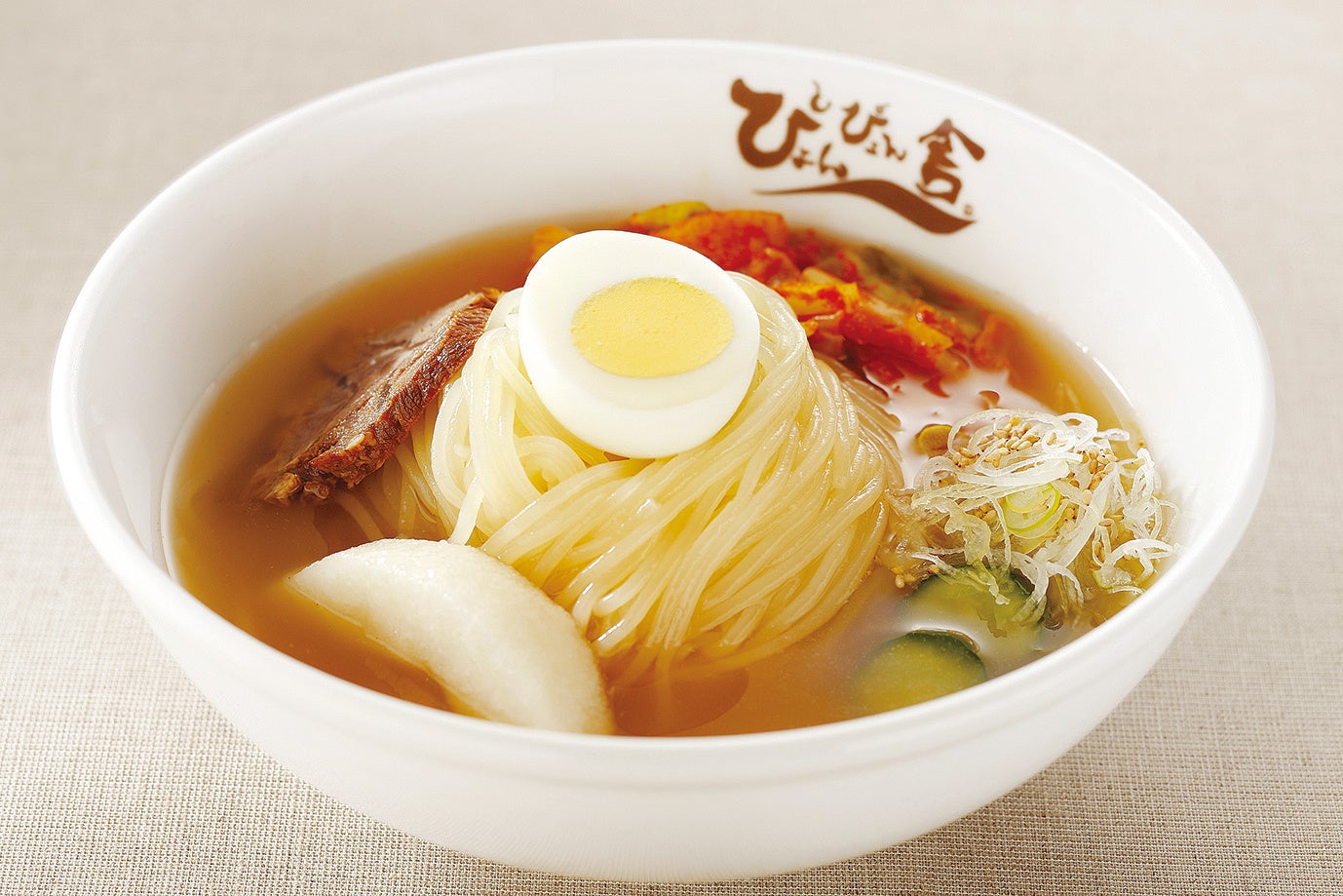 昭和 61 年「ニッポンめんサミット」に出品した時に「盛岡冷麺 」と名付けられ一躍有名となったぴょんぴょん舎の盛岡冷麺はコシの効いた麺にさっぱりピリ辛スープの物産展の人気商品。