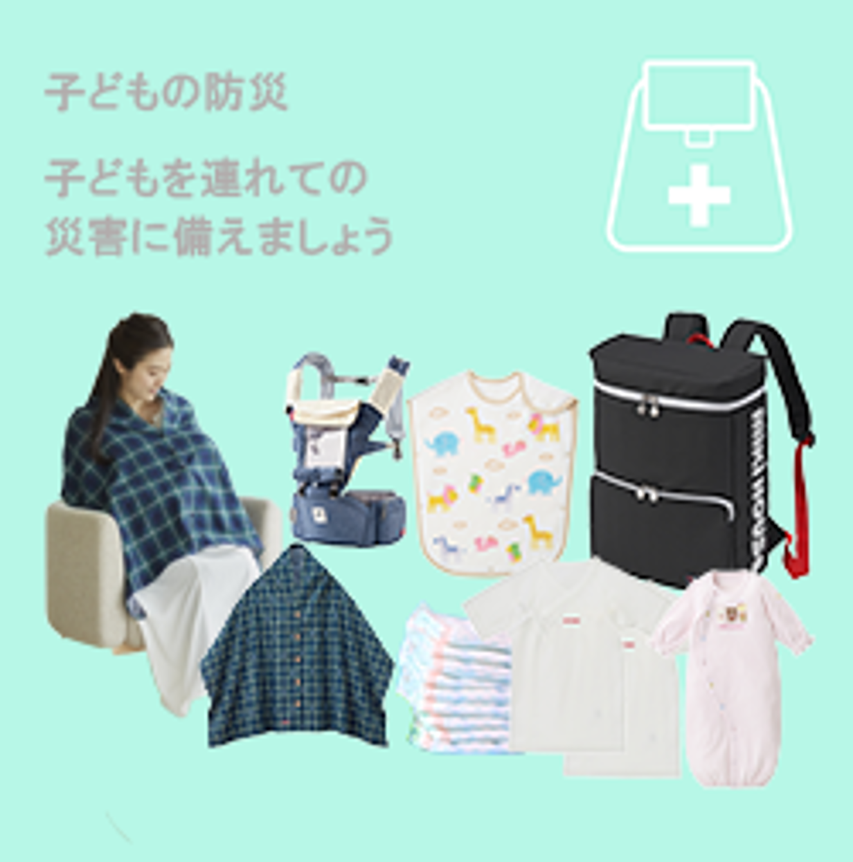 自然災害の多い昨今、住民の皆様の防災意識が高まる中で、子どもを連れての災害時に備えて、子育て世帯の不安に寄り添うことで安心して暮らせるまちづくりのお手伝いをします。避難時にお子様やご家族の不安が少しでも軽減できる様に、【子育て世帯向け防災グッズ】をご提案いたします。