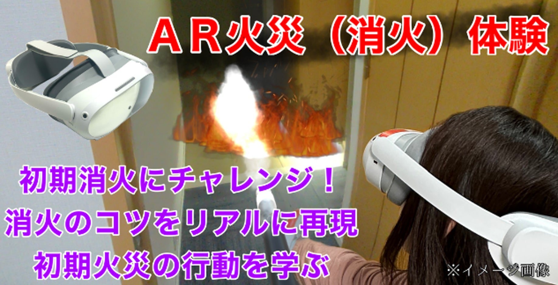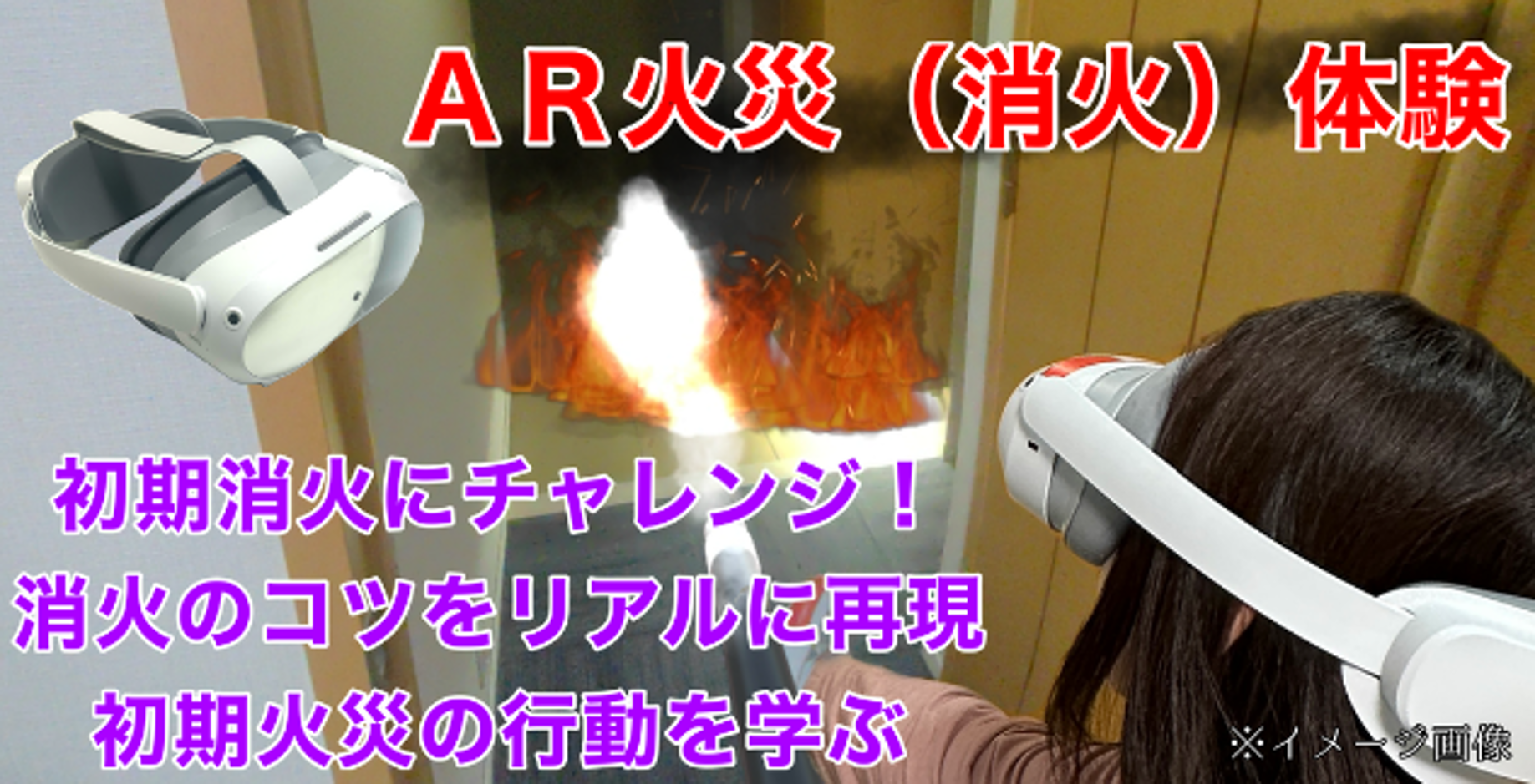 火災のほとんどは屋内で発生しています。 AR防災のAR消火体験では普段過ごしている屋内で初期消火体験が可能です。 しかもARゴーグルのため消費するものはデバイスのバッテリーのみ。 実際の消火器や消火方法に基づいた細かい設定により、消火が成功するか否か変わります。改善点についてフィードバックや指導ができ、より効果的な消火行動を学ぶことができます。