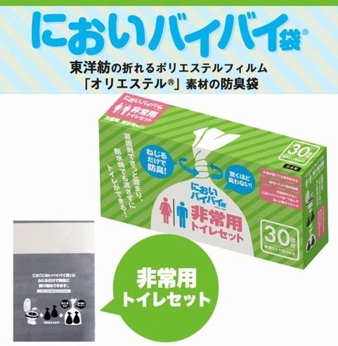 簡単・ねじる・とどまる!袋の上の透明な部分を数回ねじるだけで袋の口が閉まる、結ぶ手間が不要な新感覚のフィルムを使用した、非常用トイレセットです。におい漏れの少ないポリエステル素材を使用しておりますので、あらゆる臭いをシャットアウトします。また、燃焼時にダイオキシンを発生させないため、人と地球にもやさしいエコロジーな製品です。