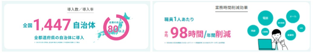 ~ 全国の自治体の8割以上が利用する「LoGo シリーズ」が、職員1人あたりの業務時間を98時間削減に貢献した背景のほか、導入自治体へのインタビュー、実績数値インフォグラフィックを公開 ~
