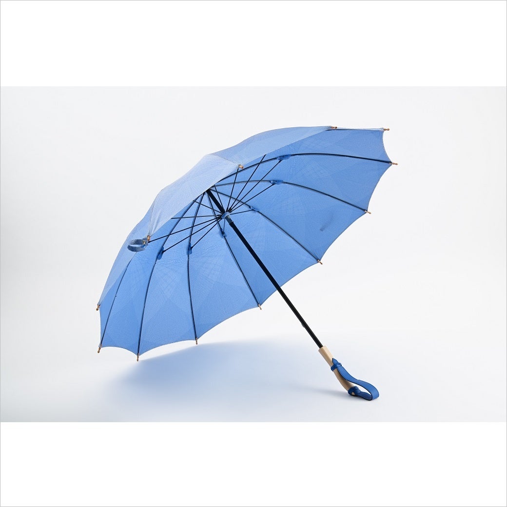 ひと粒の雫が水面に描く波紋を表現。持ち手のブルーレザーがアクセント。