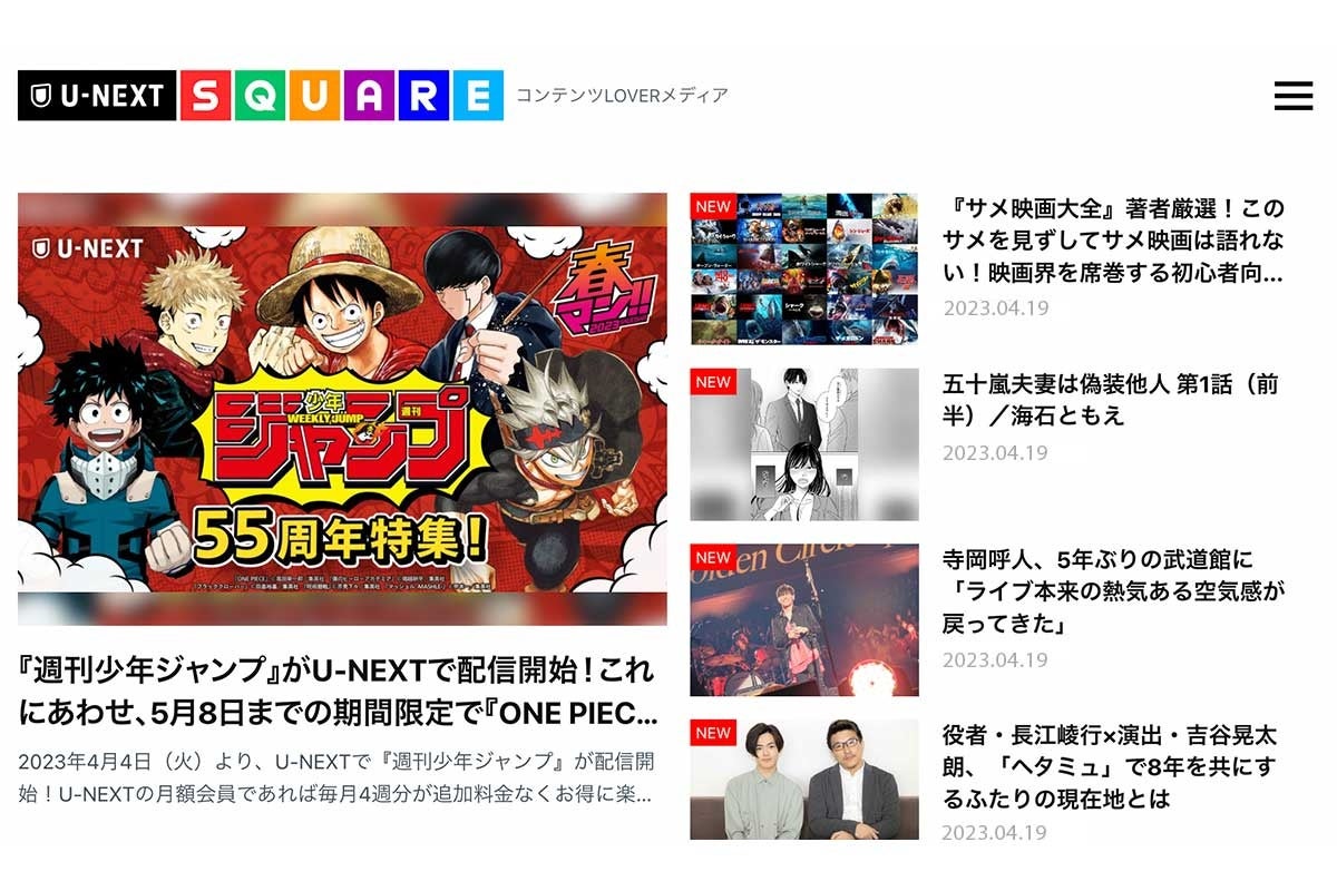 USEN-NEXT GROUPの株式会社U-NEXTは2023年4月19日(水)、コンテンツLOVERに向けたWebメディア「U-NEXT SQUARE(ユーネクスト スクエア)」を立ち上げました。