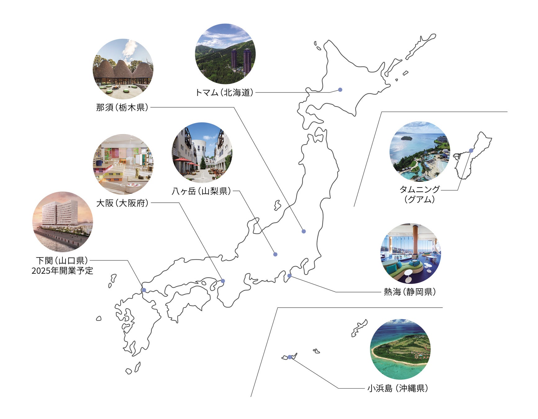「リゾナーレ」は、星野リゾートが展開するリゾートホテルブランド。夢中になって楽しみ尽くす「PLAY HARD」をコンセプトに、土地の特性を活かした空間デザイン、豊富なアクティビティをそなえ、地域や季節ならではの体験ができます。リゾナーレは、訪れる人たちに想像を超える滞在を通して、記憶に残る旅を提供します。現在、国内外7施設に展開し、2025年には「リゾナーレ下関」が山口県・下関市に開業予定です。