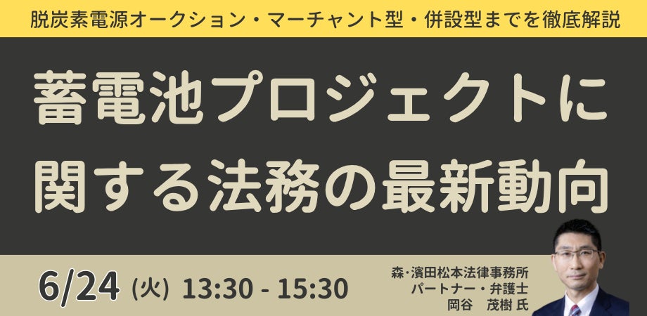 JPI(日本計画研究所)は、森・濱田松本法律事務所 パートナー・弁護士 岡谷 茂樹 氏を招聘し、蓄電池プロジェクトに関する法務の最新動向について詳説いただくセミナーを開催します。