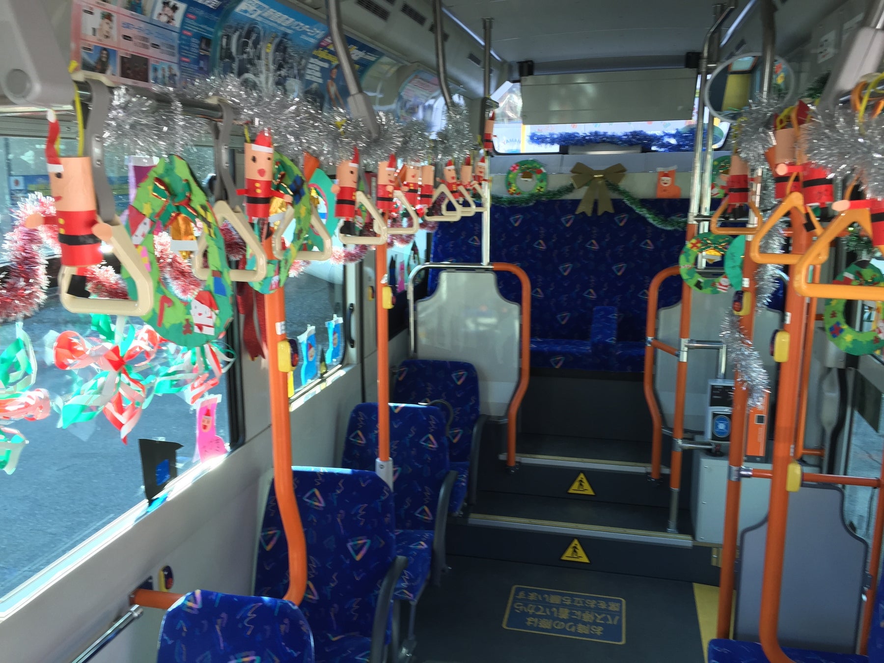 バス車内をクリスマス仕様にデコレーションした富士吉田・忍野・山中湖周遊バス「ふじっ湖号~クリスマスバス号~」を運行いたします。12月24日(土)、25日(日)の2日間限定で「ふじっ湖号」にご乗車いただく際、運転手に「メリークリスマス」とお声がけいただいた方にはミニプレゼントを配布いたします。