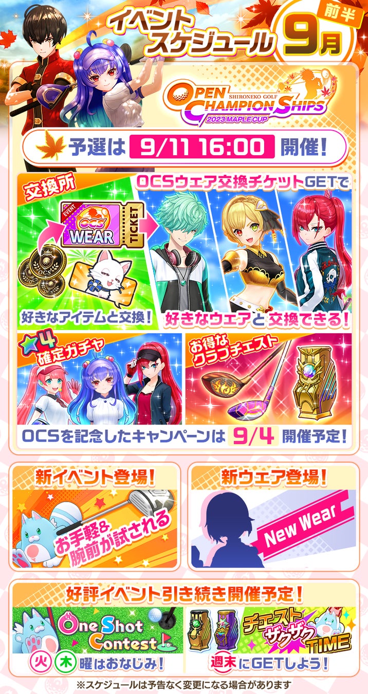 合わせて、9月前半のイベントスケジュールを公開しました。「OPEN CHAMPIONSHIPS 2023 MAPLE CUP」予選大会が開始予定ですので、チャンピオンの座を目指してチャレンジしてください!