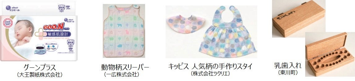 2022年1月1日~12月31日に生まれた東川町の新生児を対象に配布。「北欧柄で、子育てを楽しく!」をコンセプトにキッピス柄のスリーパーやスタイ、ブランケット、新生児用のおむつなどが入っています。キッピスがこれまでコラボしてきた企業にもご協力いただき、実現しました。